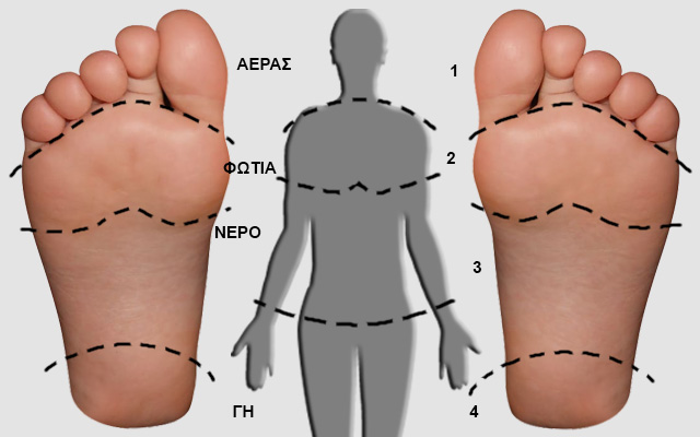 Δείξε μου τα πόδια σου και θα σου πω ποιος είσαι. Δεν είναι κλισέ, αφορά την ενεργητική ανάγνωση των ποδιών. Πώς λειτουργεί; τι μπορεί να γίνει κατανοητό παρατηρώντας τα πόδια; Τα πόδια για όλους τους αρχαίους πολιτισμούς αντιπροσωπεύουν τη σύνδεση μεταξύ της μητέρας γης και του κόσμου της ύλης, συμβολίζουν τη στάση μας, αντιπροσωπεύουν την περισσότερο ή λιγότερο σταθερή θέση μας στον κόσμο. Όλα όσα είμαστε είναι αποτυπωμένα στα πόδια μας, οι αρετές μας, οι ιδιότητές μας, οι στάσεις μας, ακόμη και οι ατέλειές μας που προσπαθούμε να κρύψουμε ή να διορθώσουμε για ολόκληρη τη ζωή μας. Πρώτα απ 'όλα, αρχίστε να παρατηρείτε στα πόδια σας το σχήμα της τοξωτής ή επίπεδης καμάρας, το σχήμα των δακτύλων και στη συνέχεια παρατηρήστε το χρώμα, τη θερμοκρασία, τα σημάδια, τους κάλους, τις γραμμές. Όλες αυτές οι ενδείξεις μας μιλάνε για την προσωπικότητά μας. Το πόδι χωρίζεται σε 4 μέρη που το καθένα αντιπροσωπεύει ένα στοιχείο της φύσης Αυτά τα 4 στοιχεία ξεκινούν από τη φτέρνα έως τα δάχτυλα των ποδιών: Γη - νερό - Φωτιά - Αέρας.